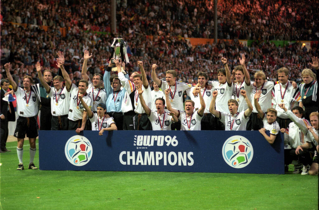 Auch wenn sich die deutsche Nationalmannschaft nach 1976 zum Spezialisten für Elfmeterschießen entwickelte, profierte sie als erste von dessen vorübergehender Abschaffung. Das sogenannte Golden Goal sollte von 1994 an eine vorzeitige Entscheidung in der Verlängerung ermöglichen. Das erste seiner Art in einem offiziellen Wettbewerb gelang Oliver Bierhoff, praktischerweise im EM-Finale von 1996. Das 2:1 in der fünften Minute der Verlängerung gegen Tschechien bedeutete den dritten Triumph für Deutschland bei Europameisterschaften. Damit ist das DFB-Team bis heute Rekord-Titelträger, seit 2012 gemeinsam mit Spanien.