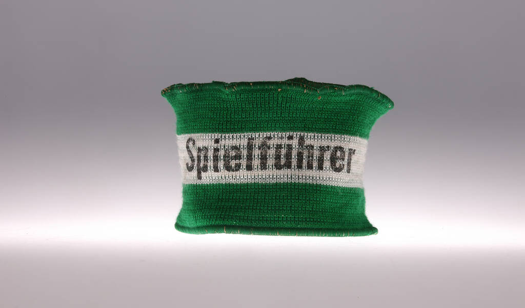 Unweit des Endspielballs ist ein weiteres bedeutendes, wenn auch kleines und sehr schlichtes Erinnerungsstück ausgestellt: die grün-weiße Spielführerbinde von Bernard Dietz, dem Kapitän des Europameisterteams von 1980. Das bodenständige Idol des MSV Duisburg steht damit in einer Reihe mit den Weltstars Franz Beckenbauer, der 1972 als erster deutscher Kapitän den Coupe Henri Delaunay in die Höhe stemmen durfte, und Jürgen Klinsmann, dem Spielführer des dritten und vorerst letzten Europameisterteams von 1996.